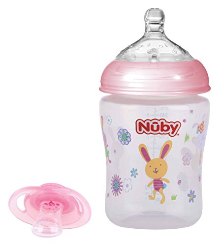 Nûby ID68057PINK flaska med dubbla halsar, 270 ml, rosa