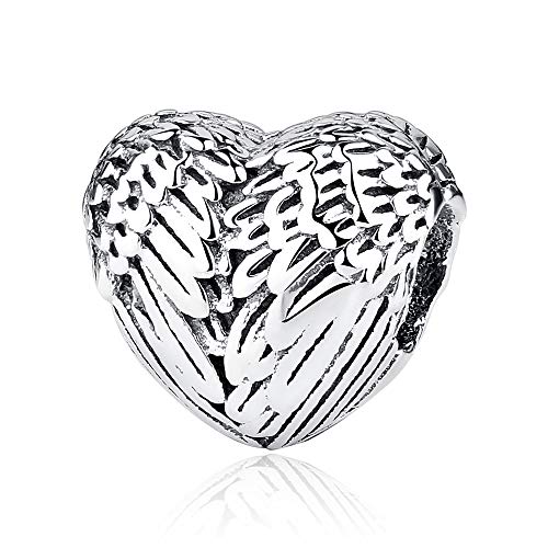 925 sterling silver berlocker ängel vinge hjärta fjädrar pärlor passar Pandora armband halsband gör-det-själv smycken, Metall