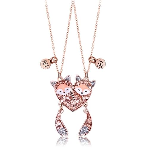 Pwsap Bästa vänner för alltid halsband, vänskap guld räv hänge kedjor halsband, BFF magnetiskt halsband, alla hjärtans dag smycken gåvor för barn mor systrar vänner, Zink