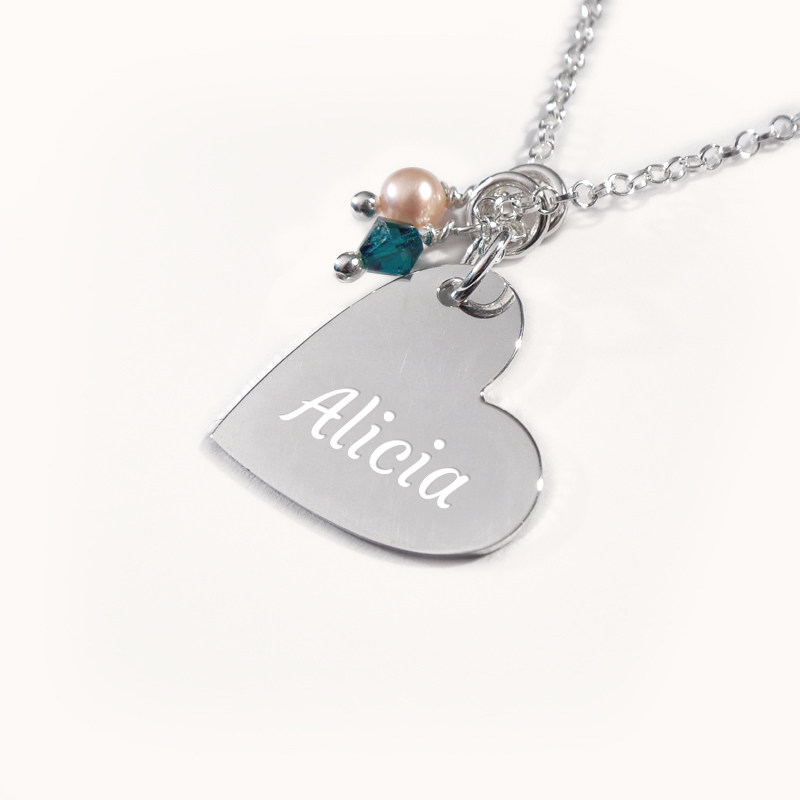 Dop Halsband - Hjärta på snedden med Gravyr i .925 Silver