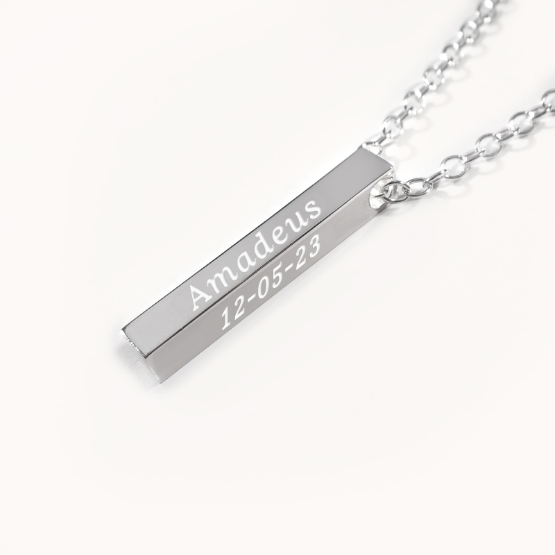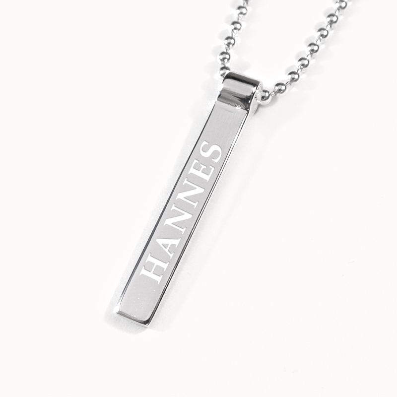 Dop Halsband - Fyrkantig 3D Stav med Gravyr i .925 Silver