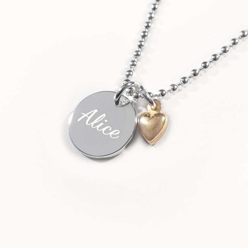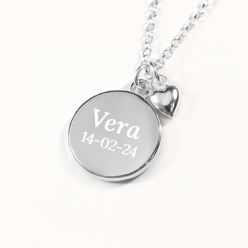 Dop Halsband - Cirkel med hjärta & Gravyr i .925 Silver