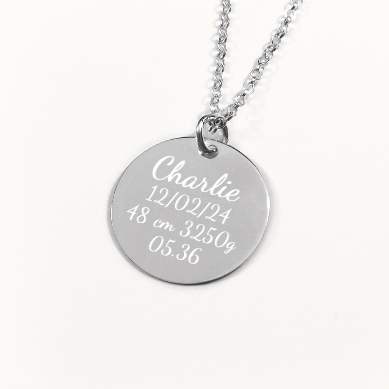 Dop Halsband - Runt Coin med Gravyr i .925 Silver