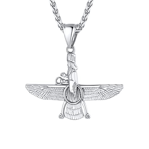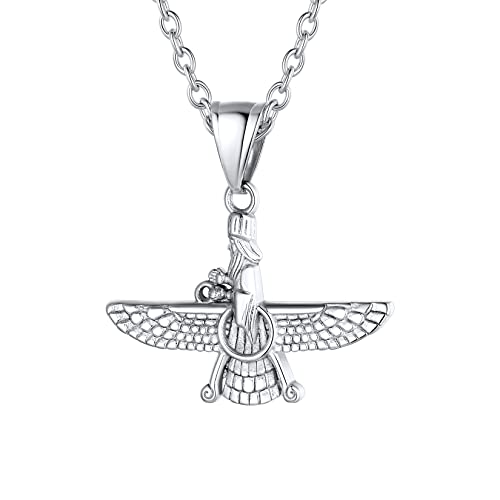 U7 FARAVAHAR Iransk vintage hängsmycke-halsband, för män/kvinnor, stor/liten storlek, guld/svartpläterad, rostfritt stål zoroastrianism smycken, persiska halsband e rostfritt stål, colore: Rostfritt stål – stor, cod. HMD-GP2774