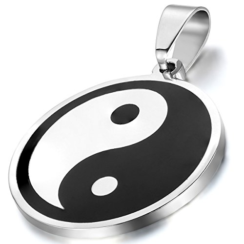 OIDEA Herr dam rostfritt stål Tai Chi Yin och Yang åtta trigram hänge halsband med kedjehalsband, 55 cm, Rostfritt stål, utan sten