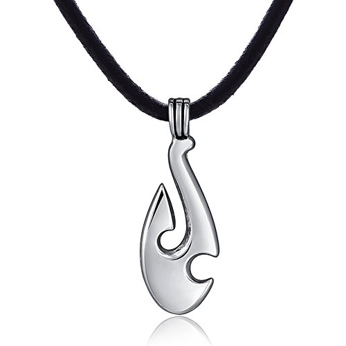DonDon herr läderrem läder halsband 50 cm med hänge i form av en maori tribal-symbol fiskkrok i rostfritt stål