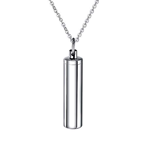 dsanbo Minnessmycke, askurna, hänge, cylinder, av rostfritt stål, halsband i silver