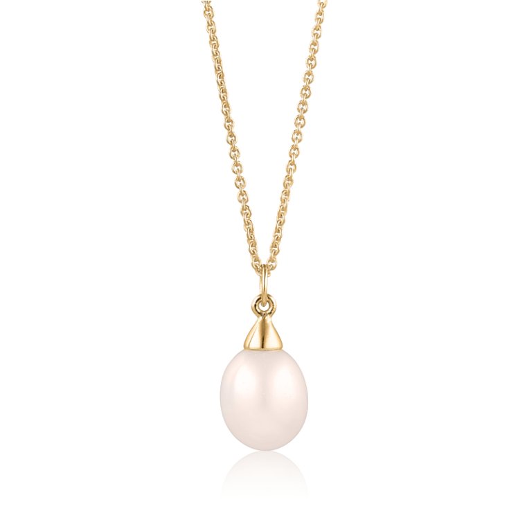 Blicher Fuglsang Halsband i guldpläterat silver med vit pärla med kedja 42-50cm