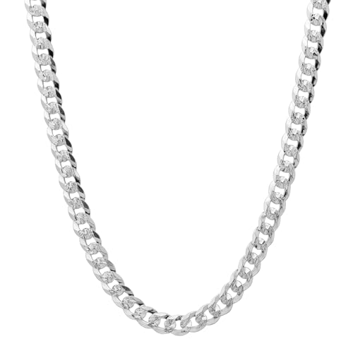 QUADRI – Elegant halsband i 925 silver med gravyr, kubansk modell för kvinnor och män – bredd 5 mm – längd 46 | 51 | 56 | 61 cm – certifierad tillverkad i Italien, Sterlingsilver, Ej tillämpbar