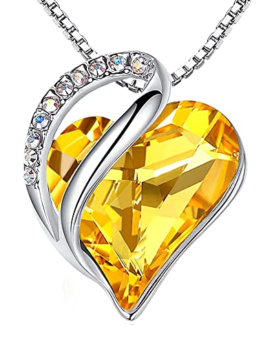 Leafael Infinity Kärlek Hjärta Hänge Halsband Citrin Gul Lycka Läkande Sten Kristall November Birthstone Smycken Gåvor för kvinnor, Silver-ton, 18 "+2"