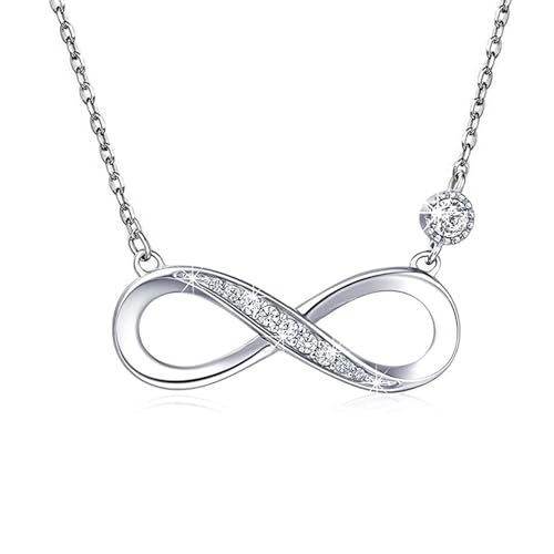 HinDaLi kristall infinity halsband sterlingsilver 925 för kvinnor flickor kvinnor zirkonia kedja med oändlighet infinity symbol hänge kedja damer silver rund silverkedja smycken presenter, 20mm