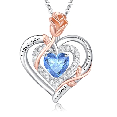 LAVUMO Halsband Dam Silver 925 Double Heart Rose Flower Chain Dam Mors dag Födelsedag Alla hjärtans dag Julsmycken presenter för kvinnor Mamma Flickvän (Silver-12-december)
