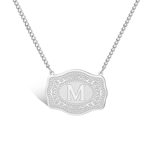 VASSAGO Bältesspänne halsband med initial bokstav för kvinnor män rostfritt stål präglat berlockhänge läcker personlig smyckesgåva (silver), Adjustable, Rostfritt stål, Ingen ädelsten