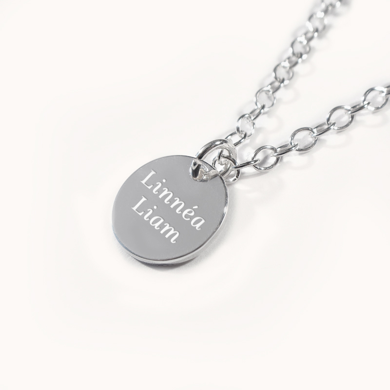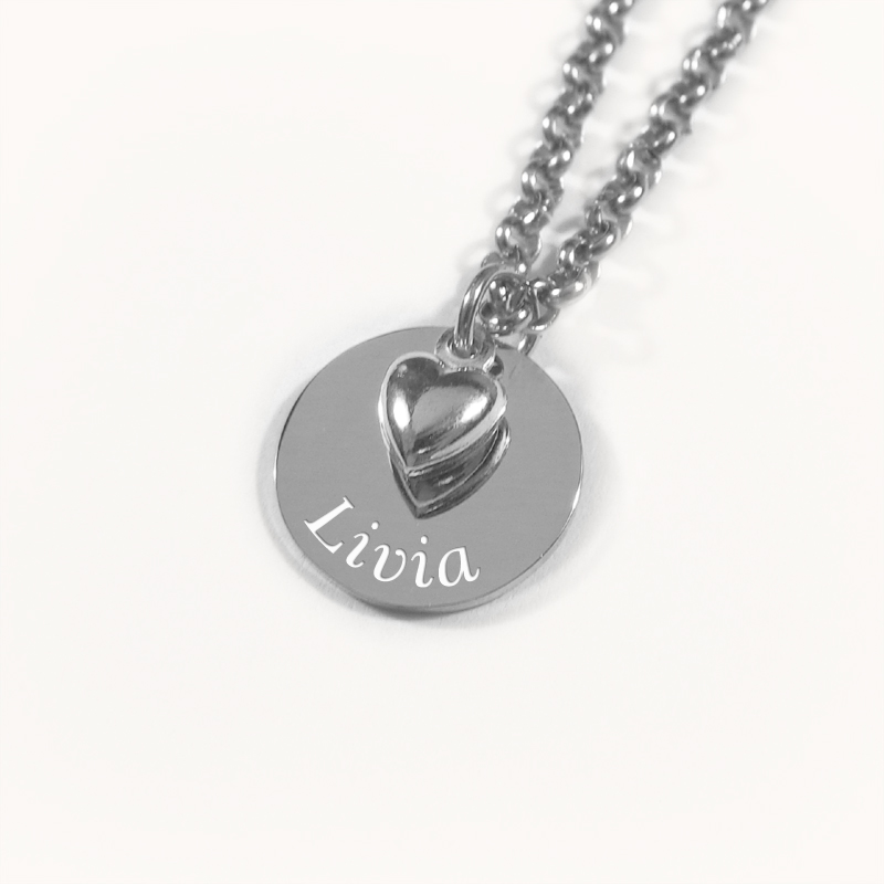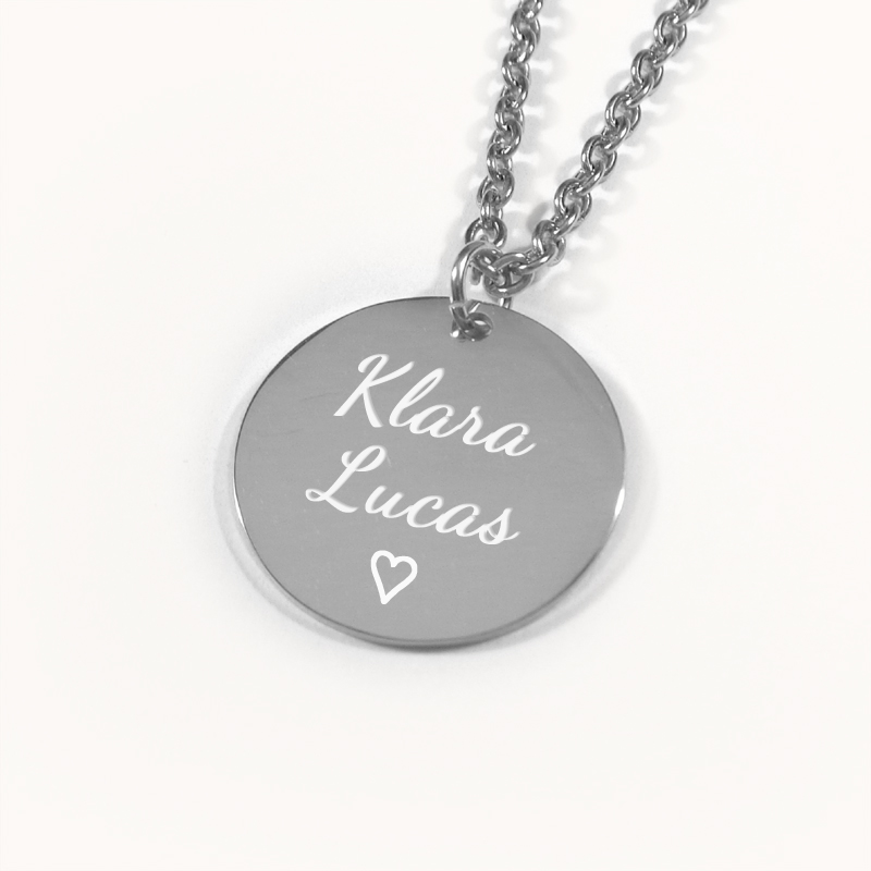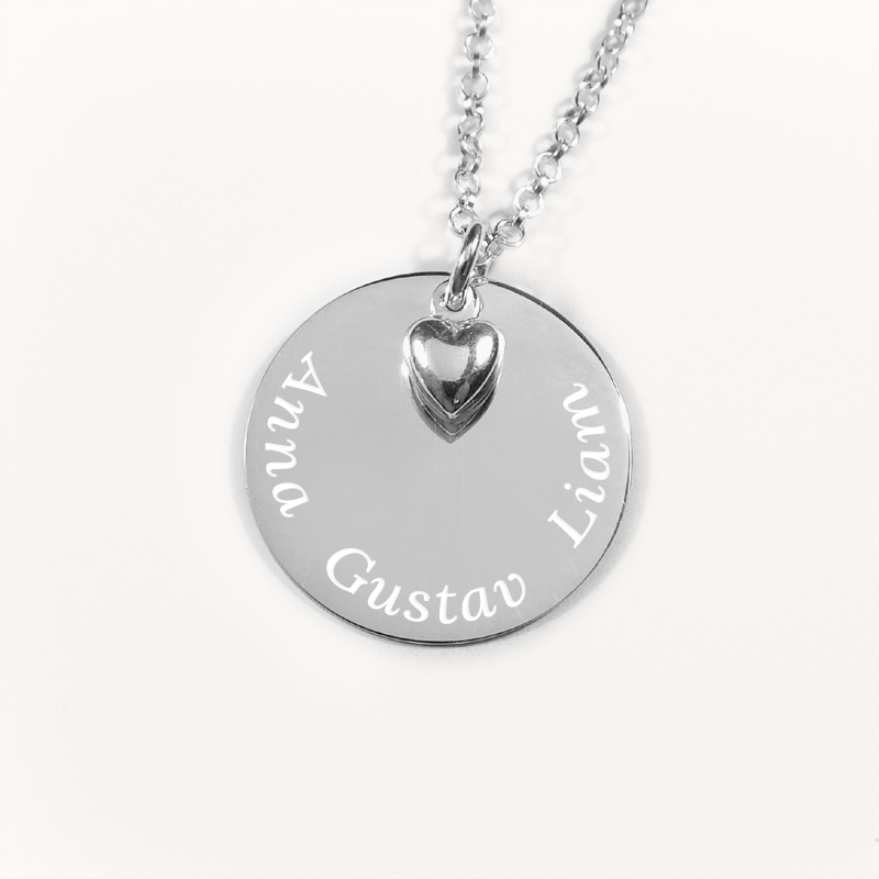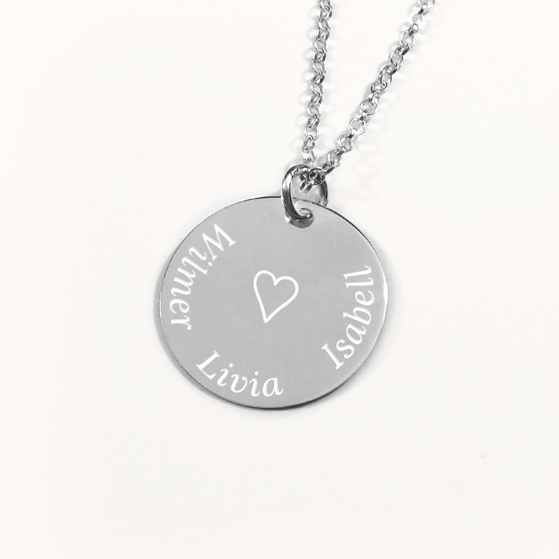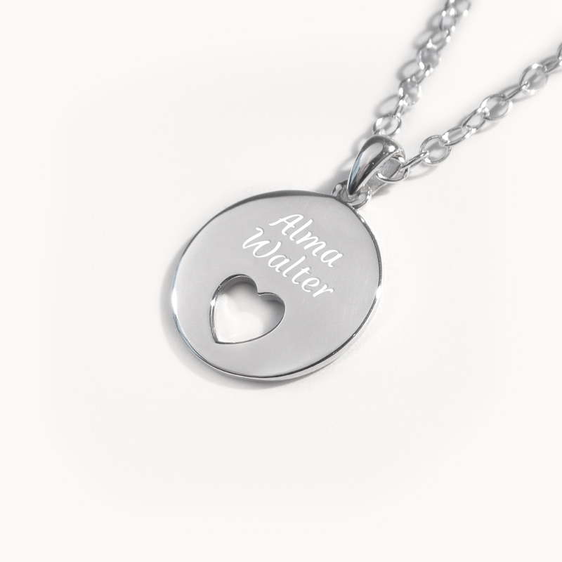Cirkel med hjärta, Halsband med gravyr - Silver