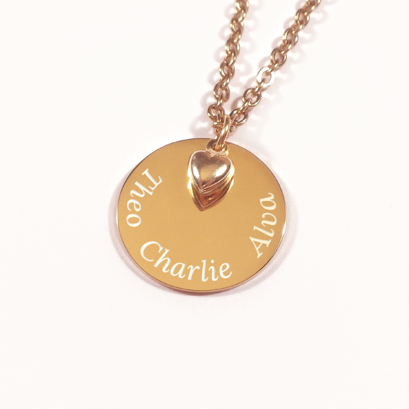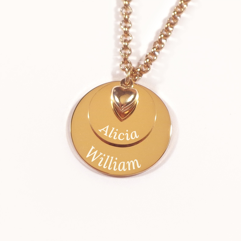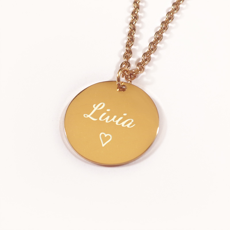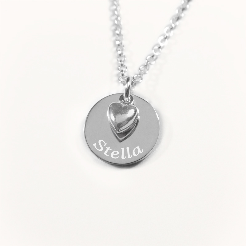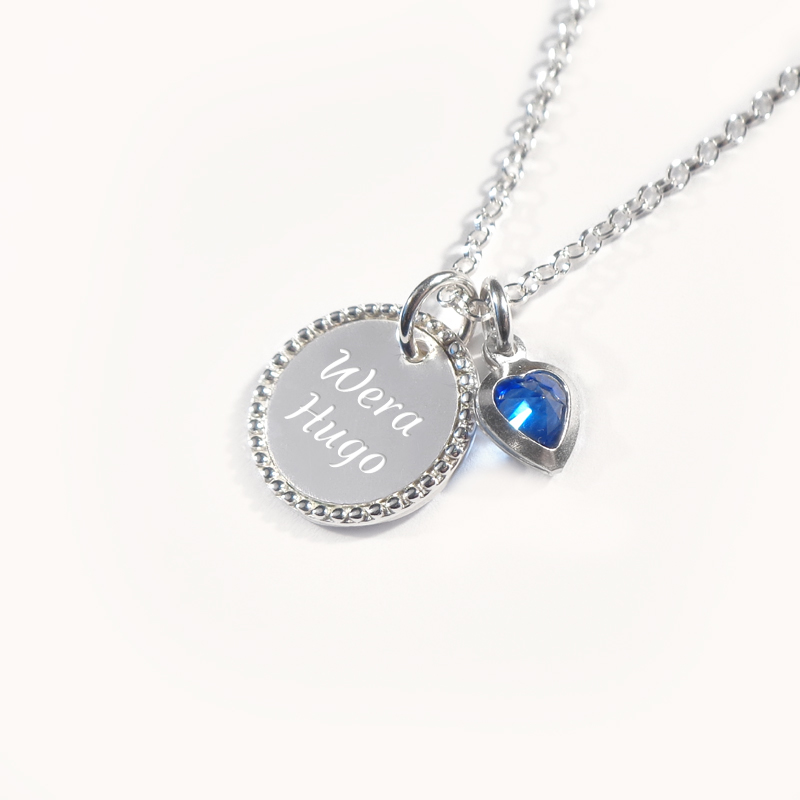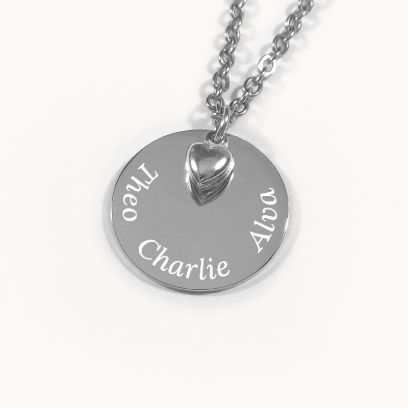Cirkel med hjärta, Halsband med gravyr - Silver