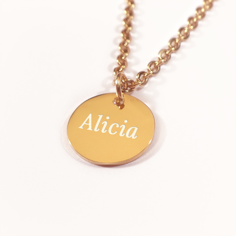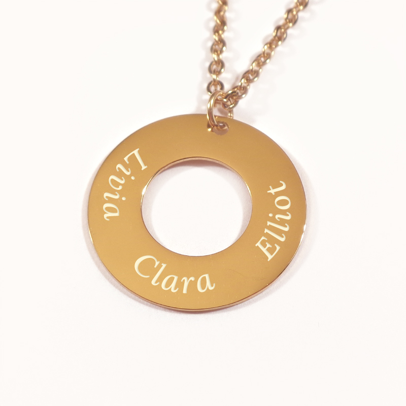 Guld cirkel, Halsband med gravyr - Rostfritt stål