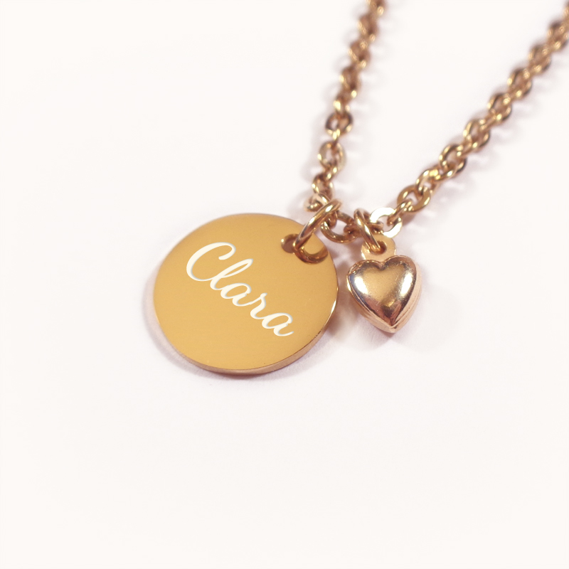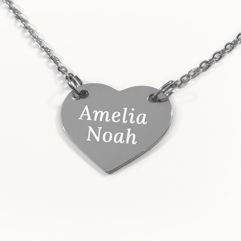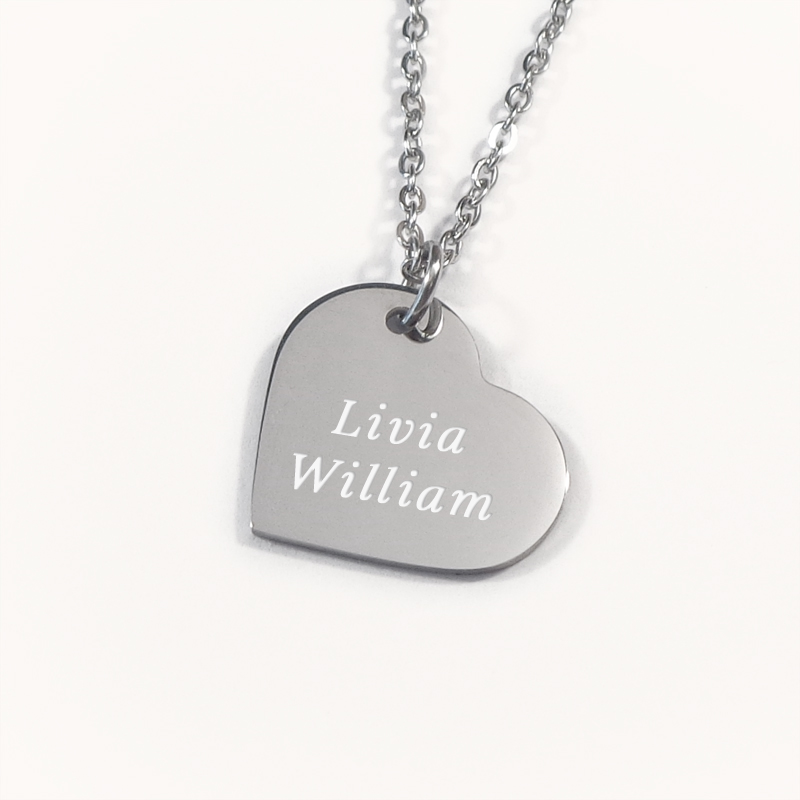 Hjärta, Halsband med gravyr - Rostfritt stål