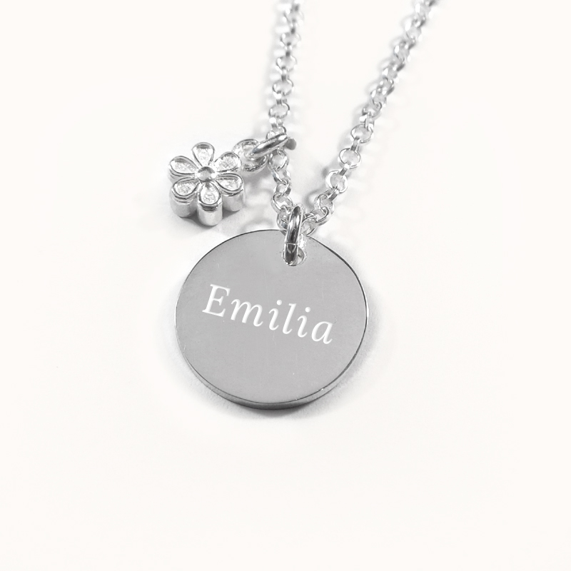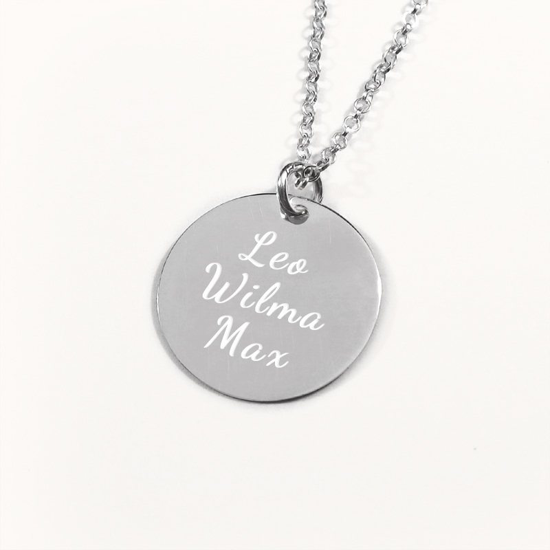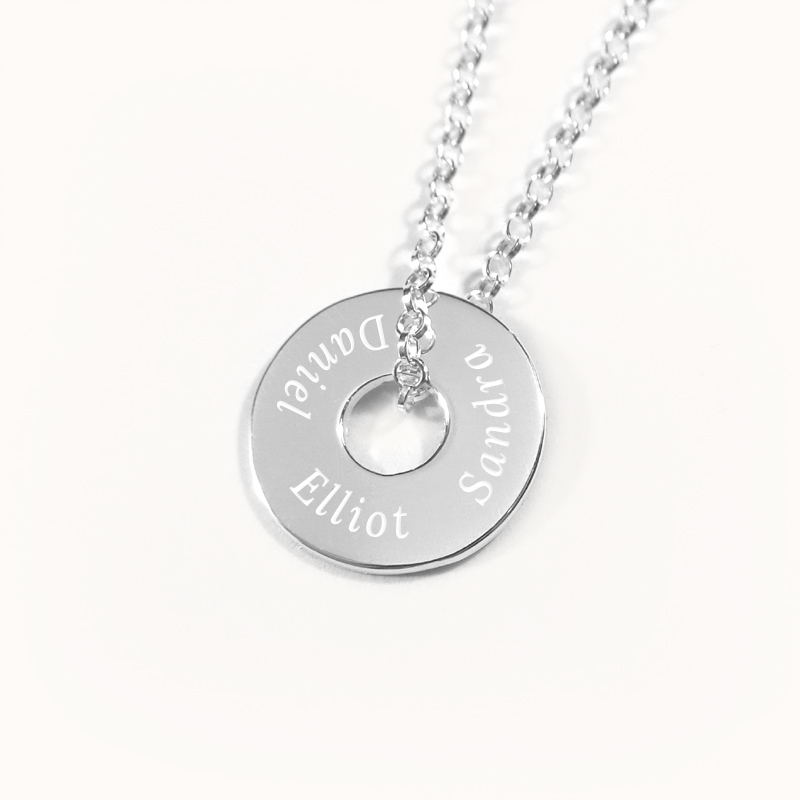Washer coin/cirkel, Halsband med gravyr - Silver