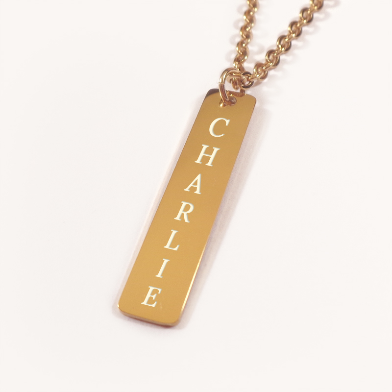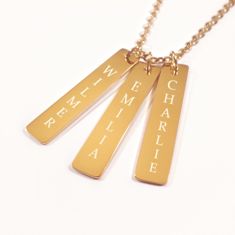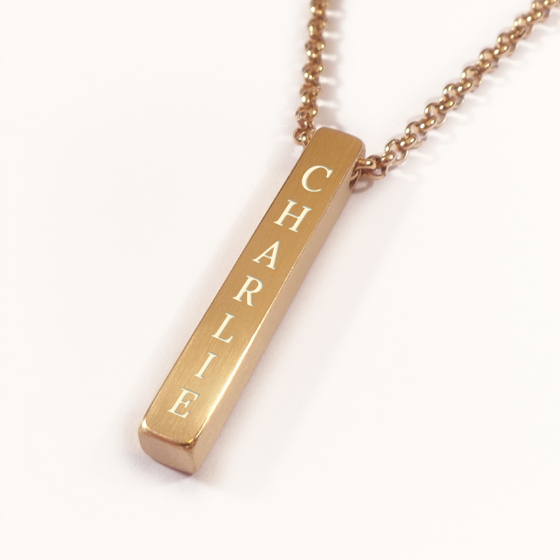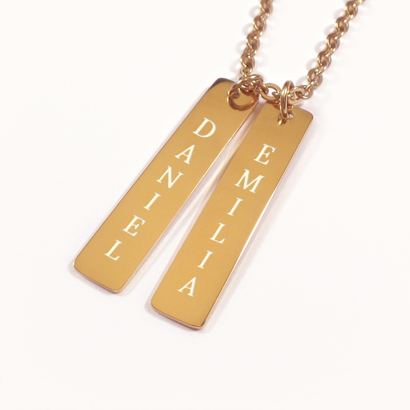 Två guld stavar, Halsband med gravyr - Rostfritt stål