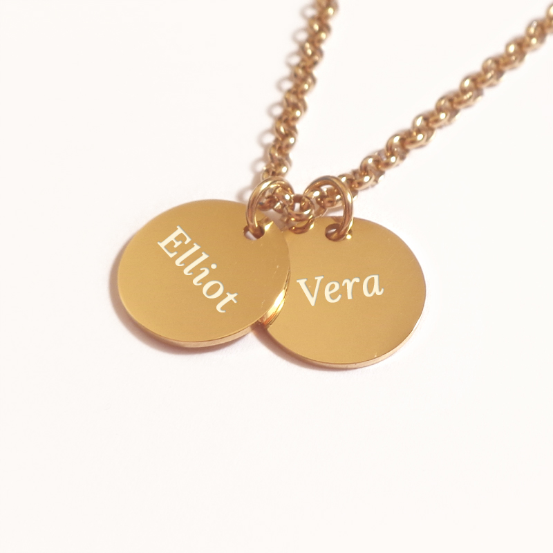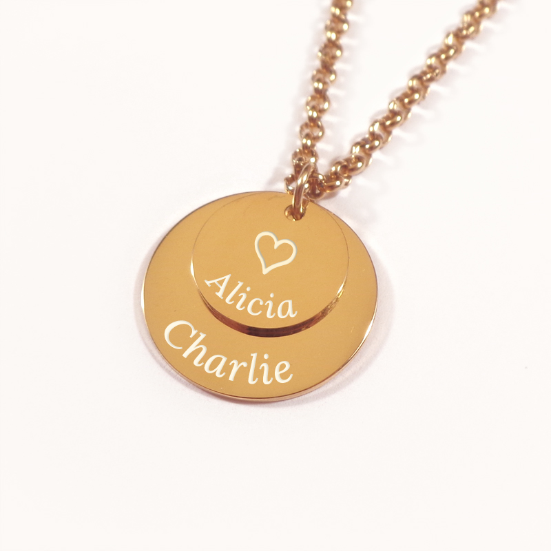 Två guld coins, Halsband med gravyr - Rostfritt stål