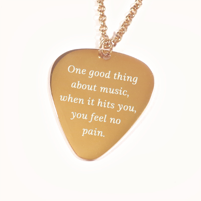 Guld plektrum, Halsband med gravyr - Rostfritt stål