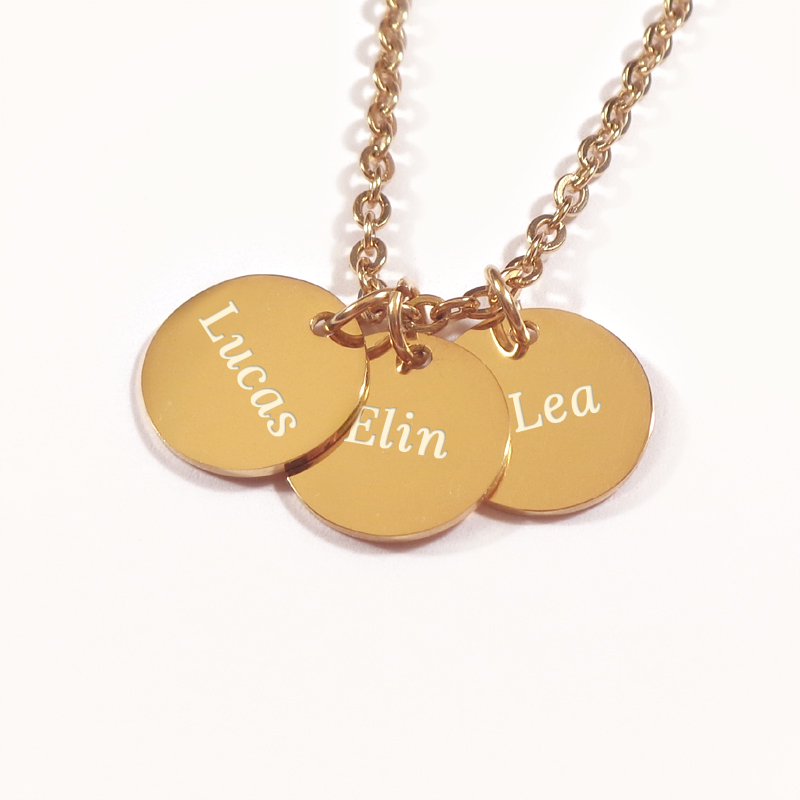 Tre guld coins, Halsband med gravyr - Rostfritt stål
