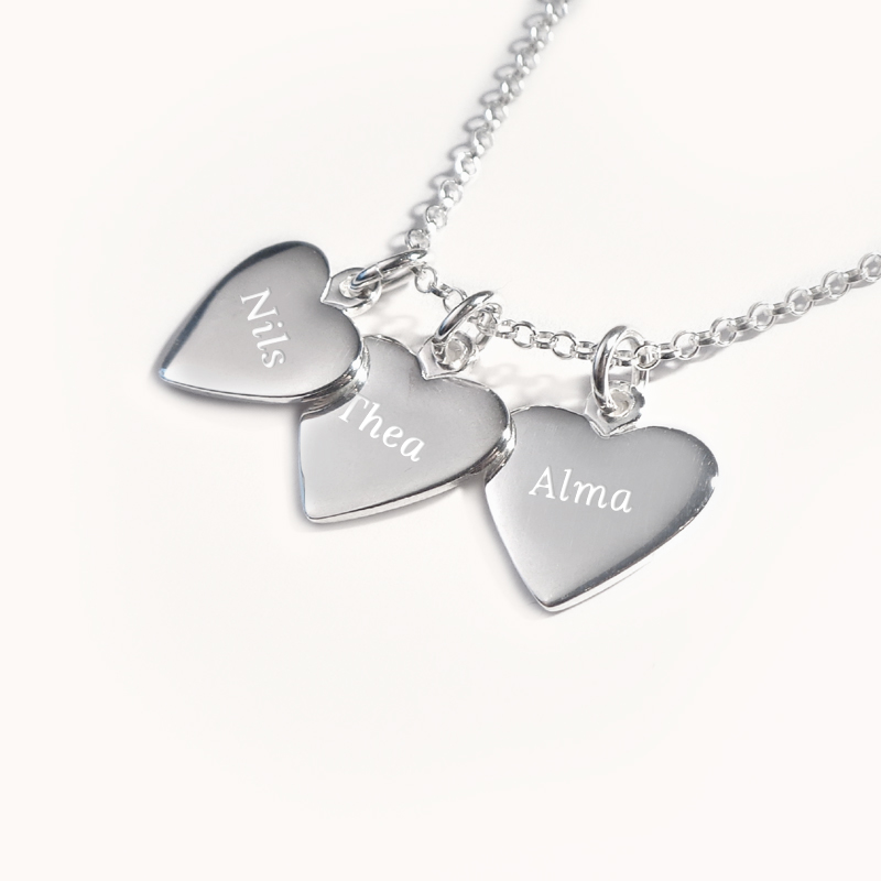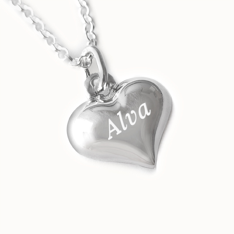 Stort fylligt Hjärta, Halsband med gravyr - Silver
