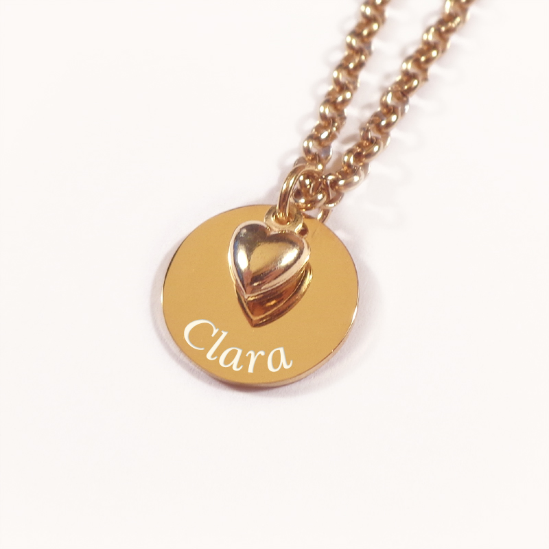 Guld hjärta, Barn halsband med gravyr - Rostfritt Stål