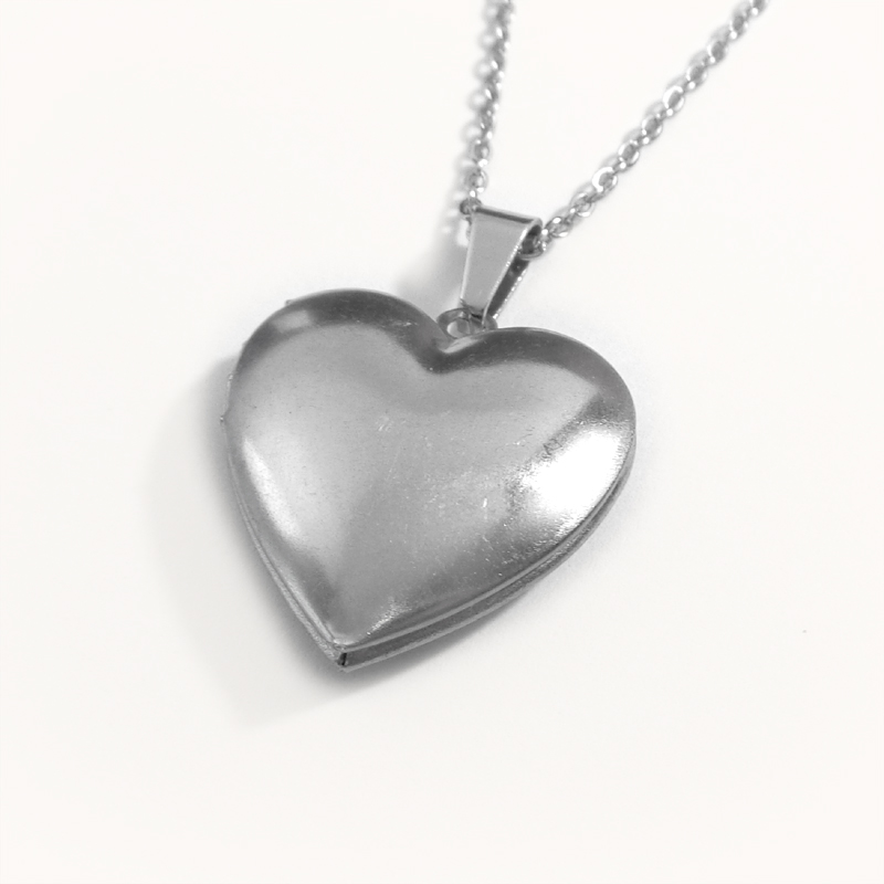 Öppningsbar hjärta medaljong, Halsband med gravyr - Rostfritt stål