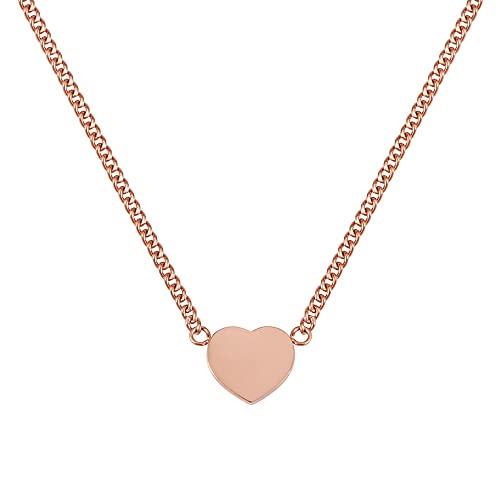 Hjärthalsband för damer - justerbart (42-47cm) | halsband med hjärta i guld 18K, silver eller roséguld | halsband i rostfritt stål (Roséguld)