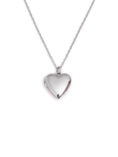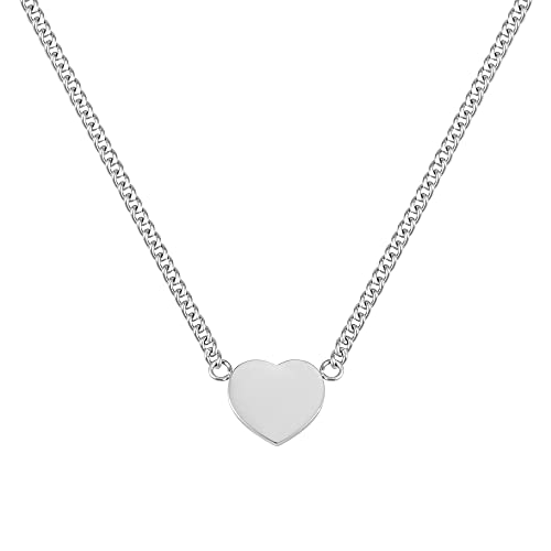 Hjärthalsband för damer - justerbart (42-47cm) | halsband med hjärta i guld 18K, silver eller roséguld | halsband i rostfritt stål (Silver)