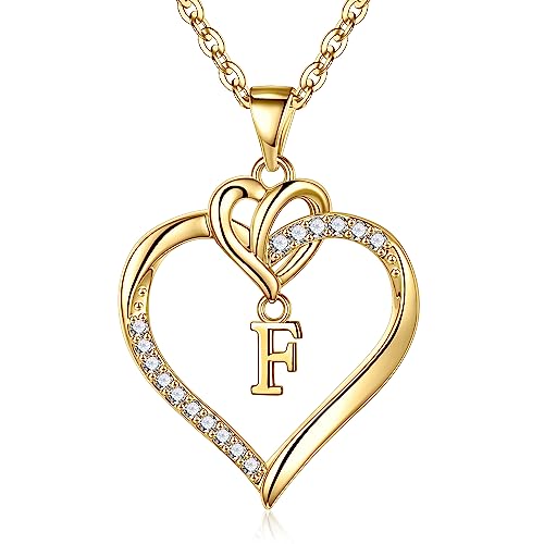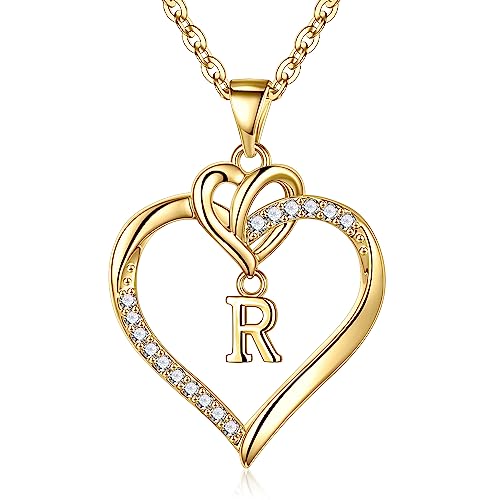 TINGN Halsband med hjärta för flickor, tonårsflickor och kvinnor, med A-Z halsband med hänge med hjärtformade initialer, H14K guldpläterad, fin design, present smycken