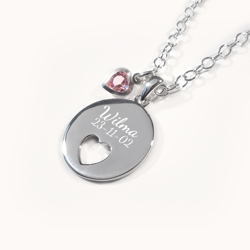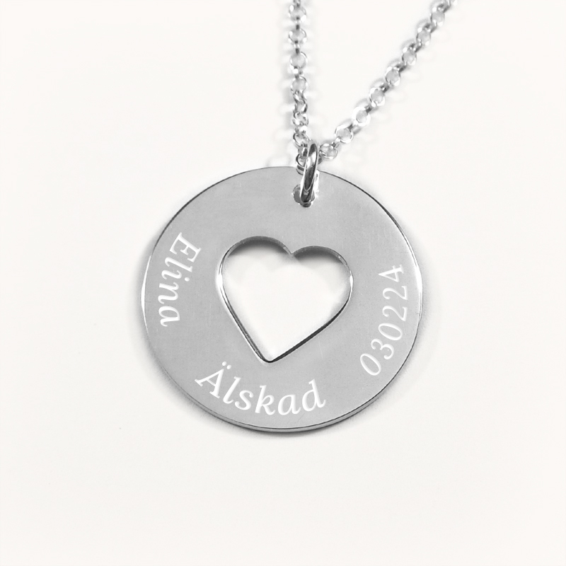 Dop Halsband - Cirkel med hjärta & Gravyr i .925 Silver
