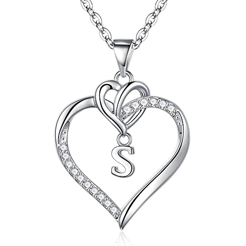 LOLIAS Halsband med hjärta och bokstav, namnkedja av rostfritt stål, silverfärgad, med litet hjärta, bokstavshänge, personlig initialkedja för kvinnor och flickor, present för bästa vän, smycke