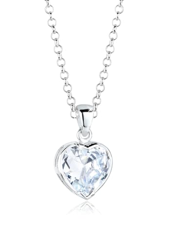 Elli Dam 925 sterling silver xilion slipad zirkon halsband med hjärta hänge av längd 45 cm, 450, Kristall, Kubisk zirkonia