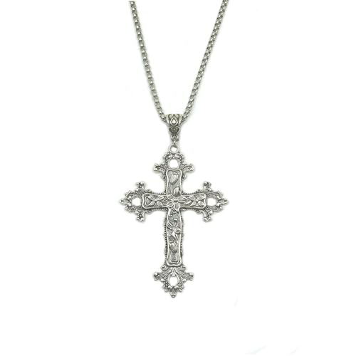 SwirlColor Kors halsband herr, stor graverad blomma gotisk silver kors halsband vintage kors halsband för män 60 cm / 23,6 tum med en smyckeskrin, één maat, Metall, Ingen ädelsten