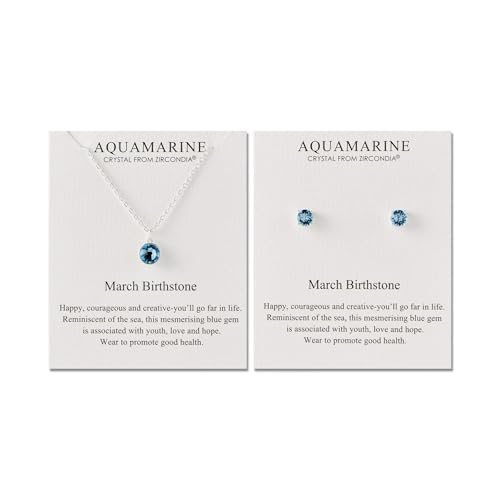 Philip Jones Mars (akvamarin) månadssten halsband och örhängen set skapade med Zircondia® kristaller, Adjustable, Silverpläterad, Zircondia kristall