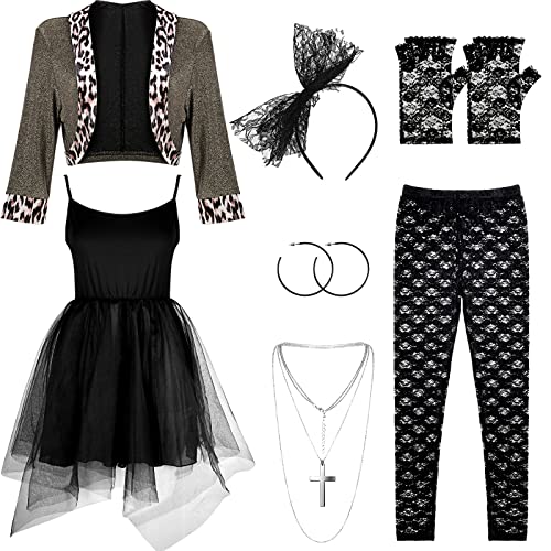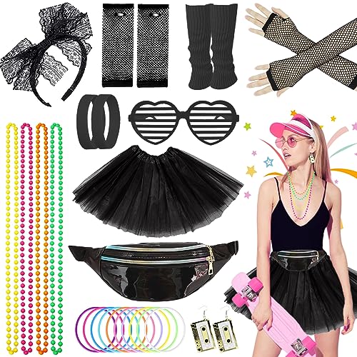 80-tals retrodräkt för kvinnor och flickor, festtillbehör, set med midjeväska, tutu, leggings, örhängen, handskar, halsband, glasögon, armband, pannband