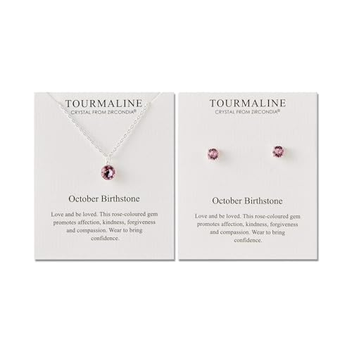 Philip Jones oktober (Tourmalin) månadssten halsband och örhängen set skapade med Zircondia® kristaller, Kristall, Kubisk zirkonia