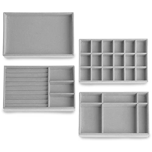 Lumeiy Smyckesdisplayset smyckesbrickor organiseringsset, avtagbara örhängen/halsband/armband/ring display förvaringslåda set med 4 (LU002-grå)