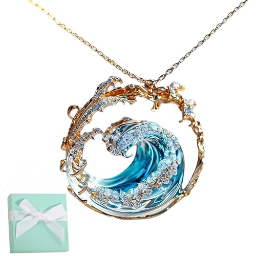 NNBWLMAEE Ocean's Eath smyckesset, romantik från havet halsband örhängen ringar set, boho sommar våg smycken gåva, Titan stål