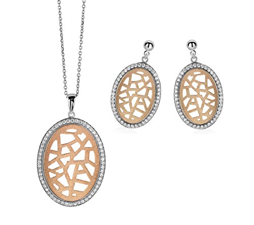 Orphelia Damsmycken set halsband örhängen 925 silver delvis guldpläterade zirkonium vit rundslipning -SET-064