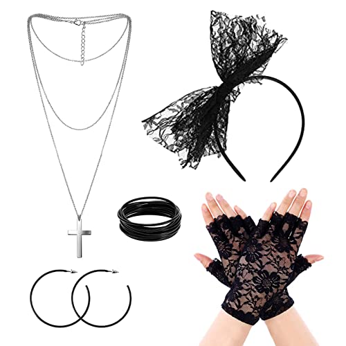 VIKSAUN 80-tals retro party kostym set 80-talet bal party tillbehör, spets pannband örhängen fisknät handskar halsband armband, temafest cosplay dekoration party favorit