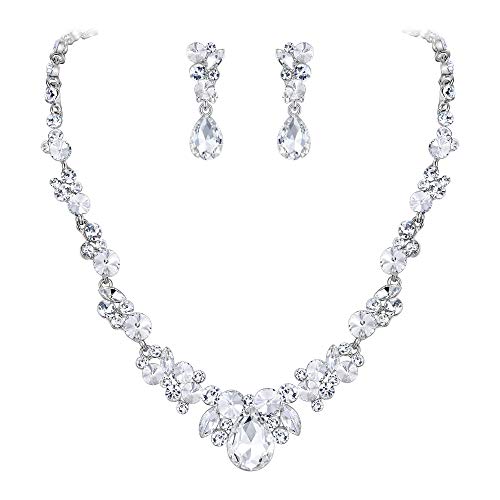 Yolev Brud bröllop smycken set brud strass halsband örhängen set bal smycken set fest smycken set för kvinnor och flickor, Metall Strass, Ingen ädelsten