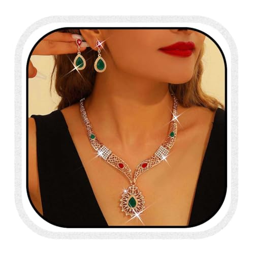 Unicra strass indiansmycken set guld halsband och örhängen set boho modesmycken bal smycken set för kvinnor, One Size, Legerat stål, Ingen ädelsten