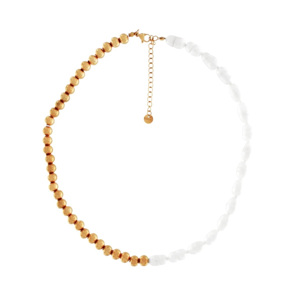JEWELS BY LEONARDO halsband Patsy • kort statementkedja av guldfärgat rostfritt stål • vita mussla pärlor i olivform • polerade guldkulor • 50 cm längd • Smycken gåva för kvinnor • 024609, 50 cm,