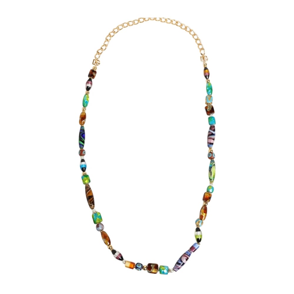 Dolce & Gabbana, Accessoarer , Dam, ONE Size, Multifärgade Murano Glas Pärlor Guld Halsband