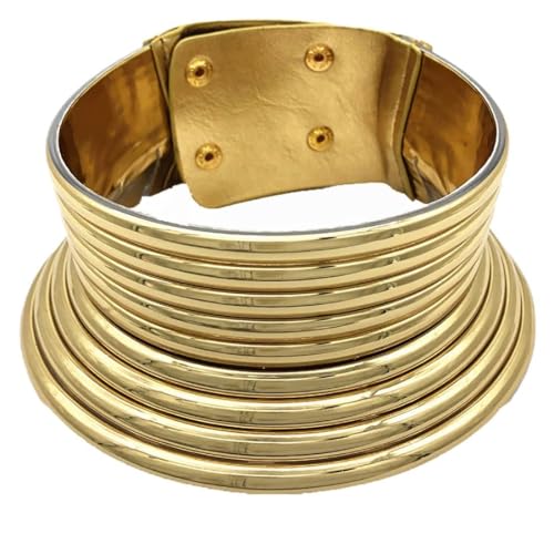 Prosy punk afrikansk kraghalsband guld afrika halsband halsband smycken justerbar för kvinnor, Guld Plast