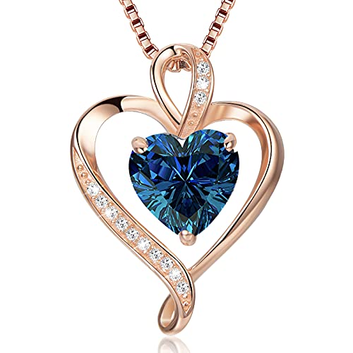 LAVUMO Halsband för Dam Sterling Silver Hjärta Hänge Halsband Rose Guld Cubic Zirconia Smycken Presenter till Flickvän Fru Mamma Hennes Födelsedag Jubileum Jul Mors Dag (Roséguld-09-september)