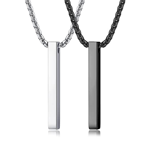 YAODCA Halsband för män rostfritt stål halsband med svart och silver stång hänge för män kvinnor par halsband män kedja halsband, Rostfritt stål, Silver